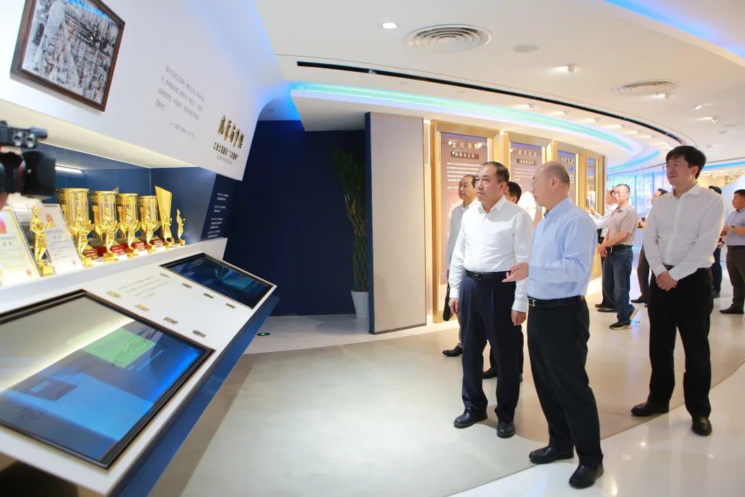 座谈会前,,,,,常张利陪同董兆伟一行旅行了集团展厅。。。。。。。。