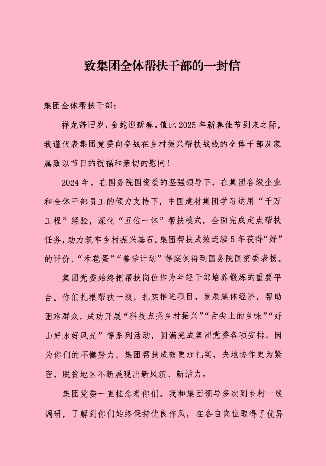 祥龙辞旧岁,,,,,,,,金蛇迎新春。。。。。。值此2025年新春佳节到来之际,,,,,,,,我谨代表集团党委向奋战在墟落振兴帮扶战线的全体干部及眷属致以节日的祝福和亲热的慰问!