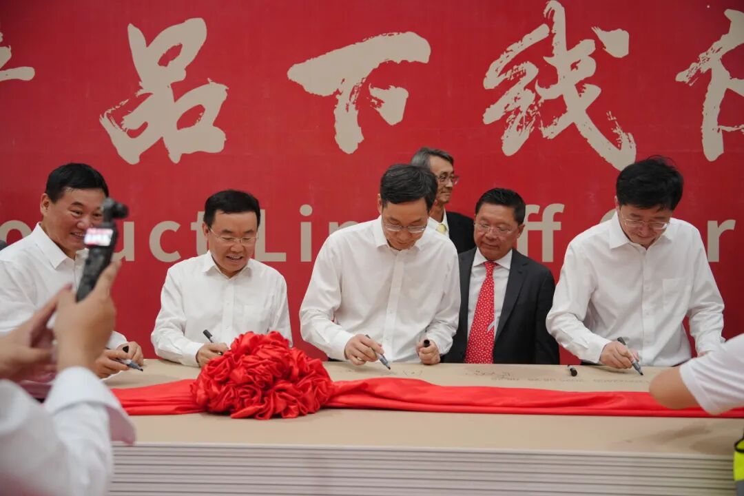 全体嘉宾对生产批次的第一批下线石膏板举行了产品下线揭幕和签字留念。。。。。