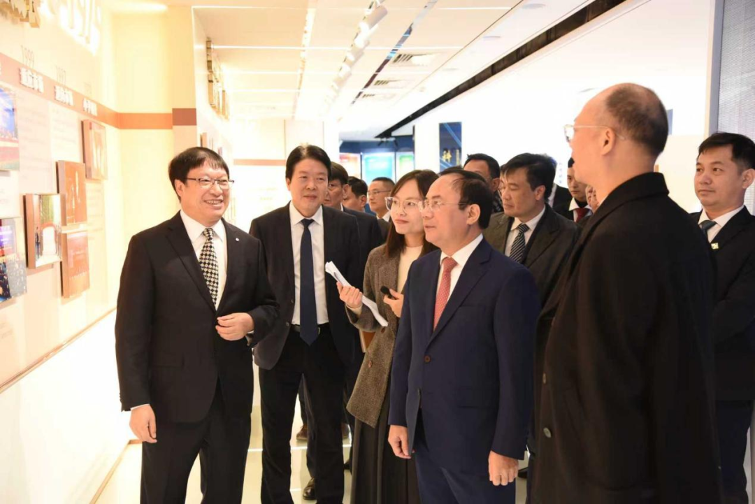 座谈前,,,,,,,王于猛陪同阮文生旅行了集团展厅。。。。。。