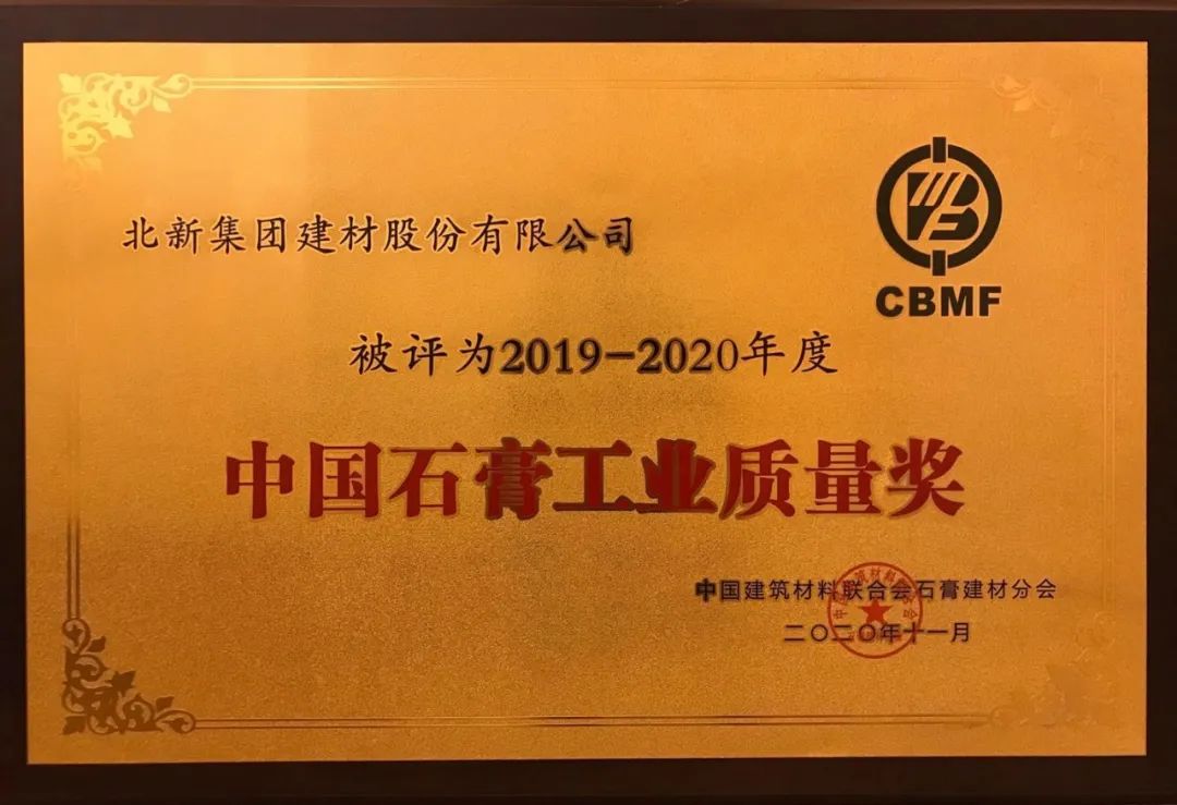 北新j9游国际站官网获“中国石膏工业质量奖”等多项声誉