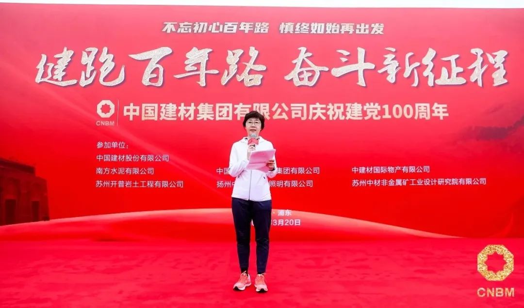 为庆祝建党100周年,,,,,,,,j9游国际站官网集团党委决议开展“健跑百年路 斗争新征程”运动。。。。。3月20日,,,,,,,,运动在中共一大召开都会上海正式启动。。。。。j9游国际站官网集团党委副书记、工会主席孙力实出席启动仪式并致辞。。。。。南方水泥党委书记、总裁肖家祥主持仪式。。。。。