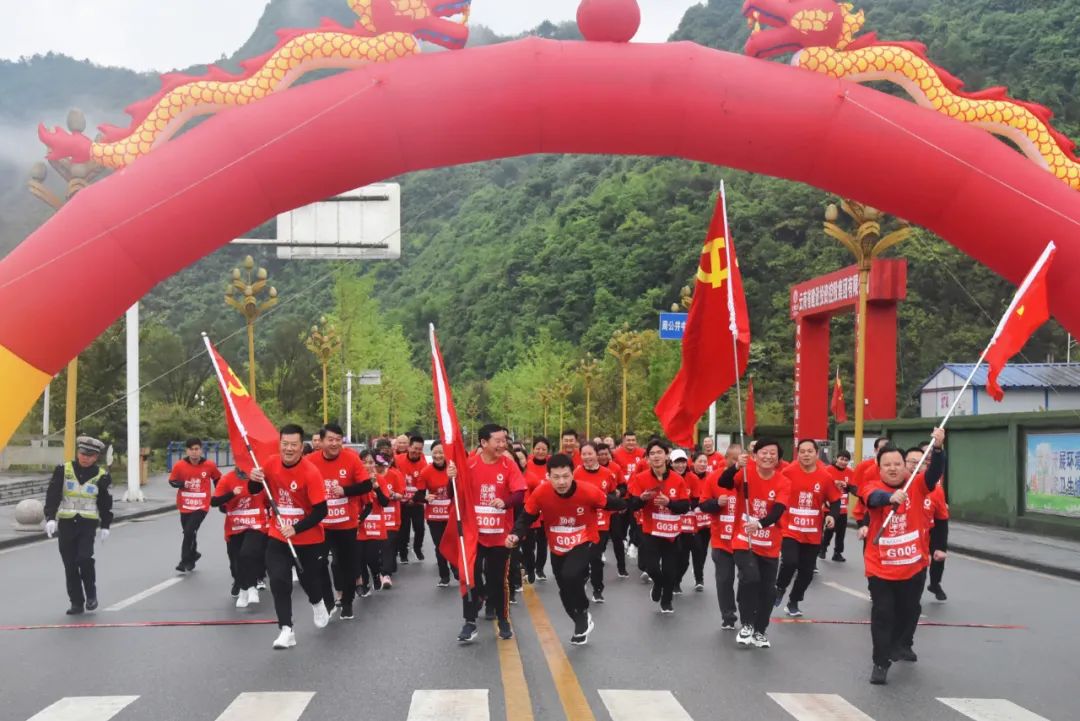 4月14日,,,,,,,,j9游国际站官网集团“健跑百年路 斗争新征程”第26站运动在贵州省遵义市娄山关红军战斗遗址顺遂举行。。。。。。。集团所属贵州毕节赛德水泥、贵州大方永贵水泥、贵州威宁西南水泥、贵州纳雍隆庆水泥、贵州黔西西南水泥、贵州西南毕节营销中心党员及治理主干共100人加入运动。。。。。。。