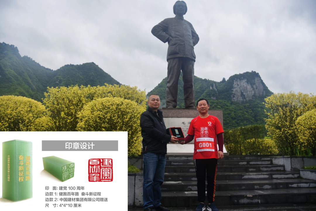 在娄山关战斗遗址毛泽东诗词馆前举行了j9游国际站官网集团庆祝建党100周年新质料印章赠予仪式,,,,,,,,贵州西南水泥党委副书记李勇向诗词馆赠予印章。。。。。。。