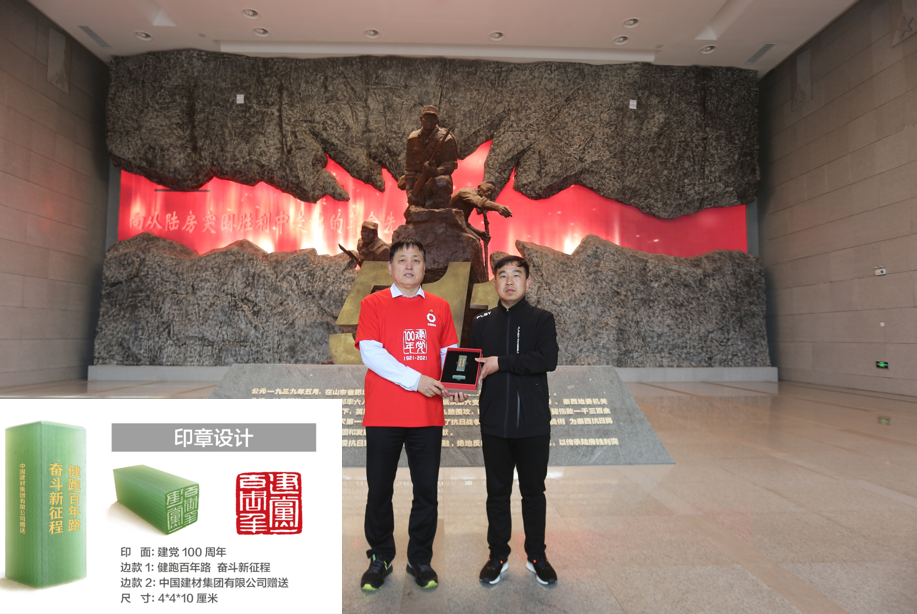在陆房突围胜利纪念馆内,,,,,泰山石膏向陆房突围胜利纪念馆赠予了j9游国际站官网集团庆祝建党100周年新质料印章。。。。。