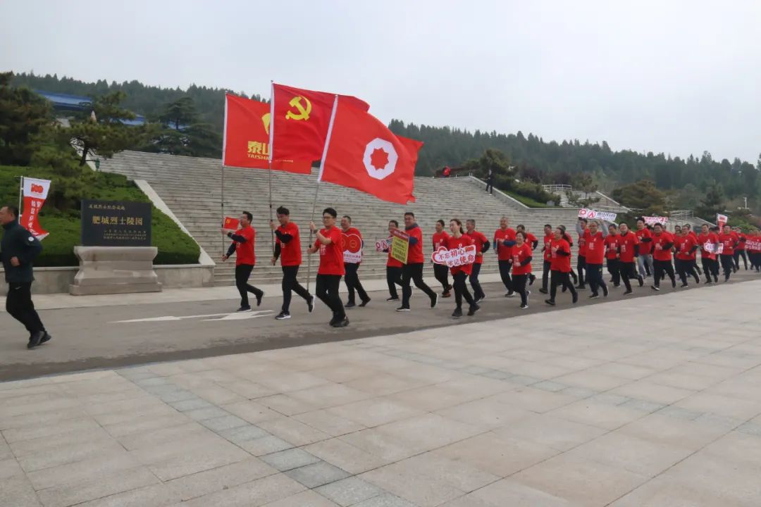 5月6日,,,,,j9游国际站官网集团“健跑百年路 斗争新征程”第48站运动在山东省泰安市肥都会陆房突围胜利纪念馆顺遂举行。。。。。集团所属泰山石膏有限公司党员干部及入党起劲分子、干部职工代表共100人加入此次运动。。。。。