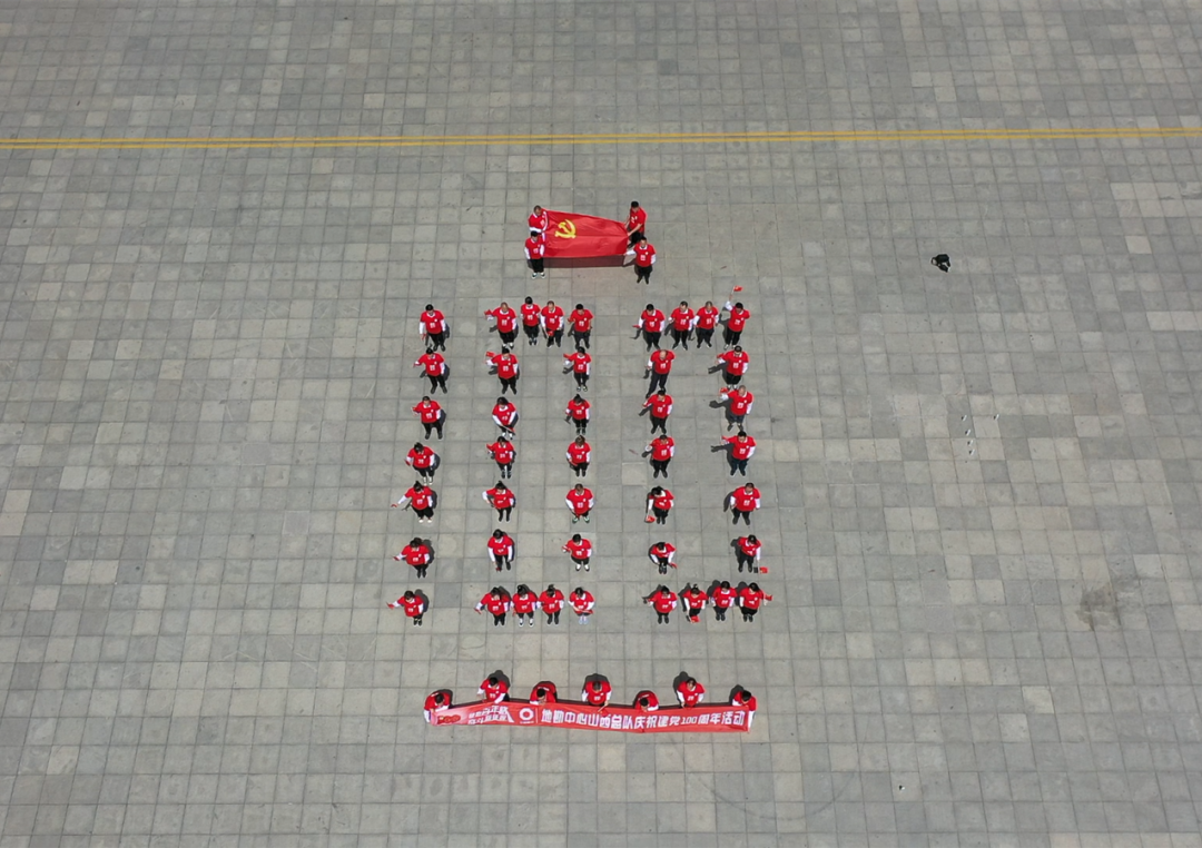 健跑运动竣事后,,,,,,在广场摆出100字样,,,,,,并齐唱歌曲《没有共产党就没有新中国》,,,,,,9名生产一线同志饱含深情的朗诵诗歌《党的礼赞》,,,,,,向党的百年诞辰献礼。。。。。。。。