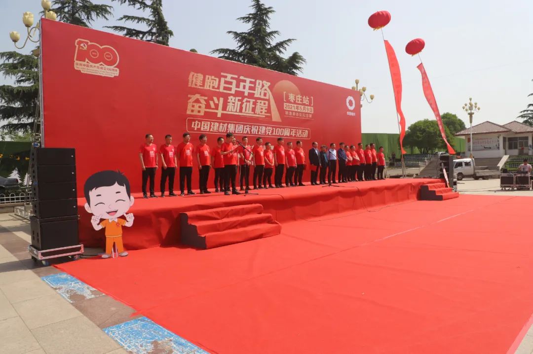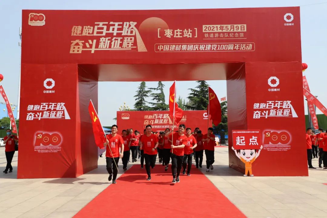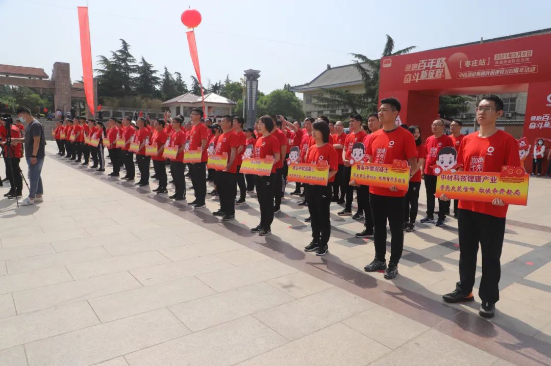 5月9日,,,,,,j9游国际站官网集团“健跑百年路斗争新征程”第51站运动在枣庄铁道游击队党性教育基地乐成举行。。。。。。。。集团所属中国团结水泥淮海运营治理区各企业、中材科技北玻院(滕州)公司、中材科技锂膜工业治理总部、滕州锂膜和北新j9游国际站官网山东枣庄分公司等16家企业共100名党员员工加入了此次运动。。。。。。。。