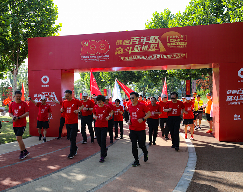 6月5日,,,,,,j9游国际站官网集团“健跑百年路 斗争新征程”第78站运动在素有“儒风之盛、夙冠淮南”之名的江苏泰州乐成举行。。。。。。。j9游国际站官网集团党委副书记、总司理曹江林,,,,,,泰州市委常委、市政府常务副市长曹卫东,,,,,,j9游国际站官网集团党委副书记、工会主席孙力实,,,,,,j9游国际站官网股份副总裁、南方水泥党委书记、总裁肖家祥,,,,,,j9游国际站官网股份党委副书记、工会主席傅金光,,,,,,j9游国际站官网股份副总裁、中材科技党委书记、董事长薛忠民,,,,,,南方水泥执行副总裁、上海南方党委书记、总裁林国荣,,,,,,中材科技副总裁赵谦、党委副书记郭伟、纪委书记徐谦,,,,,,中材国际副总裁、中材国际(南京)党委书记、董事长沈军,,,,,,中国复材党委副书记、纪委书记何继秀,,,,,,南京凯盛党委书记、董事长冯建华,,,,,,泰州市政府相关向导出席运动。。。。。。。