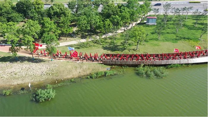 本次健跑运动设计两条蹊径。。。。。。。一是全程4.23公里,,,,,,寓意纪念中国人民解放军水师降生日;;;;;二是短程2.1公里,,,,,,寓意纪念1921年党的降生和2021年党的百年生日。。。。。。。从高空俯瞰,,,,,,天禄湖跑道形似中国地图,,,,,,围湖跑步,,,,,,寓意“祖国在心中,,,,,,实践在脚下”。。。。。。。选手们迈步健跑在天禄湖的红色跑道上,,,,,,各人精神饱满,,,,,,满心喜悦,,,,,,用双脚丈量着大地,,,,,,用情绪诠释着奔驰的激情,,,,,,绘就了一道漂亮的景物线。。。。。。。此次运动开展,,,,,,进一步引发宽大党员干部职工爱党爱国和爱岗敬业的热情,,,,,,各人感伤共产党人的精神血脉和红色基因,,,,,,越发深切感悟要永远坚持锐意立异的勇气、敢为人先的锐气、蓬勃向上的生气,,,,,,不忘初心、切记使命。。。。。。。热血影象从未远去,,,,,,红色基因薪火相传,,,,,,信仰实力汹涌不息。。。。。。。各人奋力奔驰,,,,,,践行初心使命,,,,,,为迈入“十四五”新征程、实现“两个一百年”斗争目的孝顺实力!