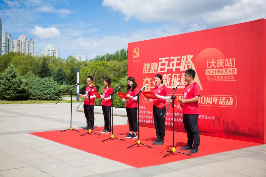 6月6日,,,,,,j9游国际站官网集团“健跑百年路 斗争新征程”第79站运动在黑龙江大庆铁人王进喜纪念馆顺遂举行。。。。。集团所属北方水泥哈尔滨片区黑龙江省宾州水泥、大庆市天温顺混凝土、大庆鸿庆水泥、哈尔滨市呼兰水泥、绥化北方水泥共62名党员职工加入了此次运动。。。。。