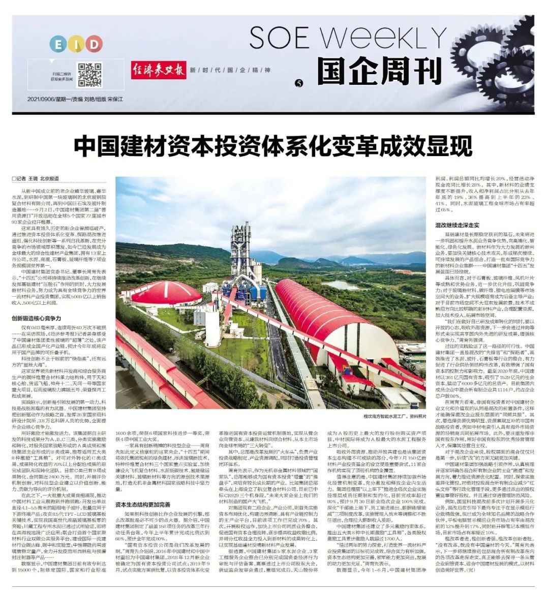 经济参考报专稿《j9游国际站官网资源投资系统化厘革效果展现》着重报道了柔性玻璃、石英玻璃、碳纤维复合质料承力结构件等新质料产品应用于神舟十二号、天问一号等国家工程,,,,,强调j9游国际站官网集团正在运用强盛的科研能力,,,,,立异铸造企业焦点竞争力。。。。。。。同时,,,,,一连增强市场化谋划机制厘革,,,,,推进混淆所有制刷新,,,,,探索从管企业到管资源、适合j9游国际站官网生长的新模式。。。。。。。