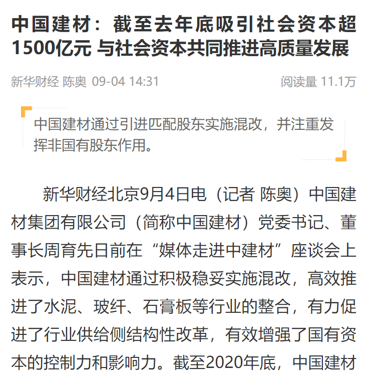 新华财经专稿《j9游国际站官网:阻止去年底吸引社会资源超1500亿元 与社会资源配合推进高质量生长》强调j9游国际站官网通过起劲稳妥实验混改,,,,,高效推进了水泥、玻纤、石膏板等行业的整合,,,,,有力增进了行业供应侧结构性刷新。。。。。。。别的,,,,,着重先容了j9游国际站官网集团坚持选择资源优势显着、资源禀赋互补的非国有战略投资者开展混改,,,,,推进市场化谋划机制,,,,,优化管控和资源设置,,,,,引发内生涯力、动力,,,,,有用增强了国有资源的控制力和影响力。。。。。。。