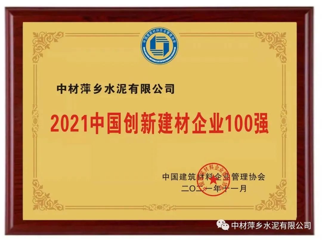 中材萍乡获“2021中国立异j9游国际站官网企业100强”等两项殊荣
