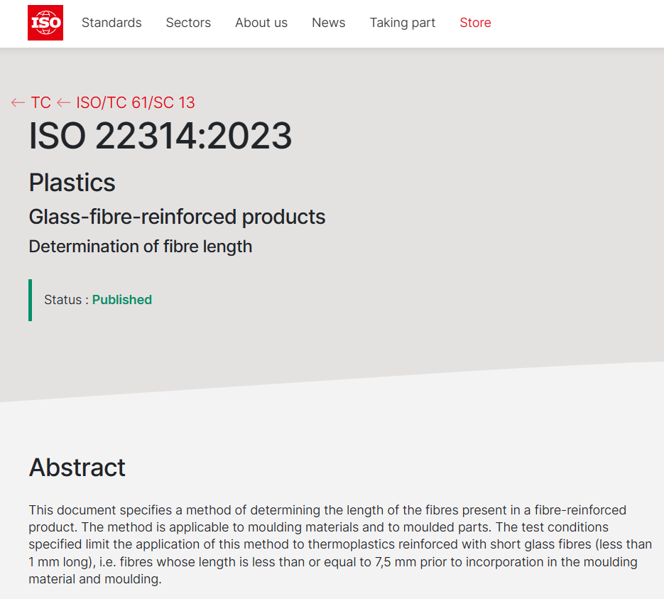克日,,,,,北玻院首个主导修订的国际标准ISO22314:2023《塑料 玻璃纤维增强制品 纤维长度的测定》(Plastics—Glass-fibre-reinforced products—Determination of fibre length)正式宣布。。。。。。。。该标准划定了一种测定玻璃纤维增强热塑性复合质料制品中纤维长度的要领。。。。。。。。此次修订历时15个月,,,,,各阶段标准草案投票均获得10余个ISO投票权成员国100%的赞成票。。。。。。。。该项标准的乐成宣布,,,,,标记着公司迈上国际标准制修订事情的新台阶,,,,,提升了中国在国际标准化领域的话语权。。。。。。。。