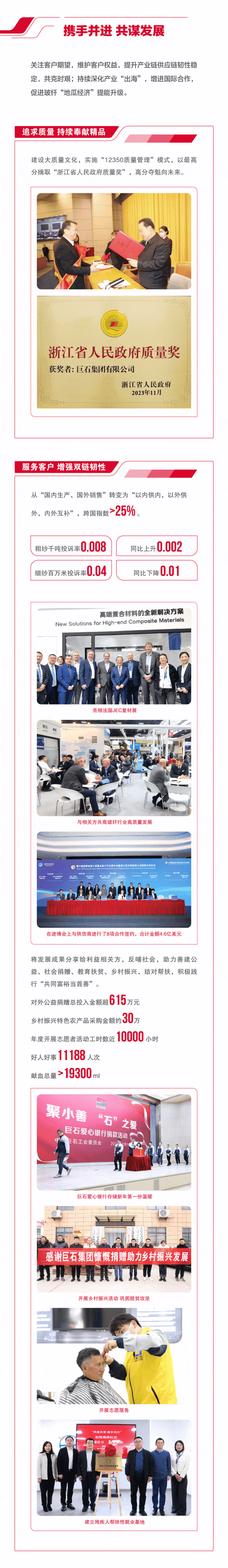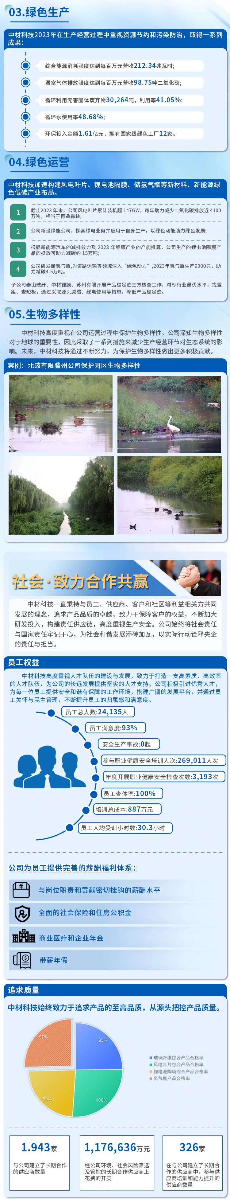 泉源:集团公司治理部、中国巨石、中材科技 宣布时间:2024-04-12作为“中央企业ESG同盟”首批成员企业,,,,,,j9游国际站官网集团起劲践行ESG理念,,,,,,以“质料创立优美天下”为使命,,,,,,坚持“善用资源、效劳建设”的焦点理念,,,,,,承继“立异、绩效、协调、责任”的焦点价值观,,,,,,追讨情形、社会及治理的协调共赢,,,,,,将ESG理念最终落着实市场绩效、科技立异、节能环保、员工关爱、企业公民等履责实践之中,,,,,,并一直建设健全ESG事情机制与治理系统,,,,,,起劲推动成员企业披露专项报告。。。。。现在,,,,,,已实现集团所属13家上市公司ESG专项报告披露“全笼罩”。。。。。