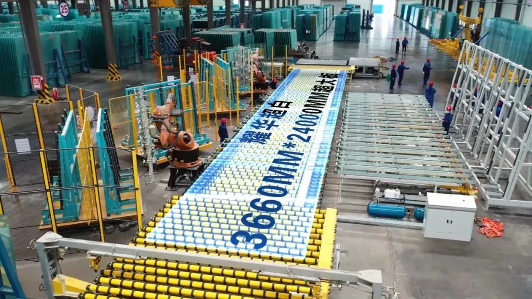 试生产当天,,,,,,,随着“嘭”的一声脆响,,,,,,,一片知足各项手艺指标的超白15mm厚板被优化切裁为3.66m×24m,,,,,,,沿着加速辊道向后端驶去,,,,,,,经由吊机稳外地吸片、放片,,,,,,,乐成落入靠背架。。。。。