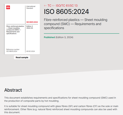克日,,,,,国际标准化组织(ISO)正式宣布了国际标准ISO 8605:2024《纤维增强塑料——片状模塑料(SMC)——要求和规范》(Fibre-reinforced plastics — Sheet moulding compound (SMC) — Requirements and specifications),,,,,该项标准由北京玻钢院复合质料有限公司主导修订。。。。。。此次修订历时3年,,,,,通过对SMC产品的生产和应用举行充分调研,,,,,在标准中新增了近年来产量及应用都逐渐增添的碳纤维(包括接纳碳纤维)、玄武岩纤维等纤维类型,,,,,给出了较适当的SMC命名规则,,,,,增添了SMC缩短代号和须要的SMC测试性能等。。。。。。该项标准的乐成宣布,,,,,为全球SMC产品的应用及工业的生长提供了手艺支持,,,,,发动该项手艺走出国门、走向国际,,,,,周全展现我国在SMC手艺领域施展的起劲作用,,,,,为复合质料国际标准化事情孝顺了中国智慧。。。。。。