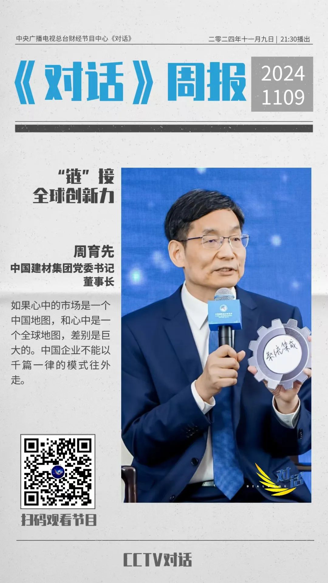 今晚21:30|央视财经《对话》:周育先分享j9游国际站官网“链”接全球、扩大“朋侪圈”的思索和实践