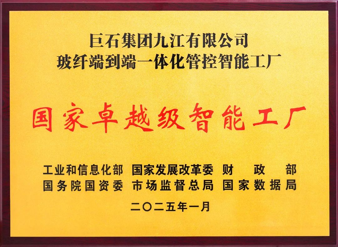 克日,,,,,,,工信部宣布首批卓越级智能工厂名单。。。。。。。中国巨石电子级玻璃纤维布端到端集成管控智能工厂、巨石九江有限公司玻纤端到端一体化管控智能工厂双双上榜,,,,,,,实现了玻纤粗纱和电子基布两大品种全笼罩,,,,,,,代表了国家对中国巨石智能制造水平的高度认可。。。。。。。