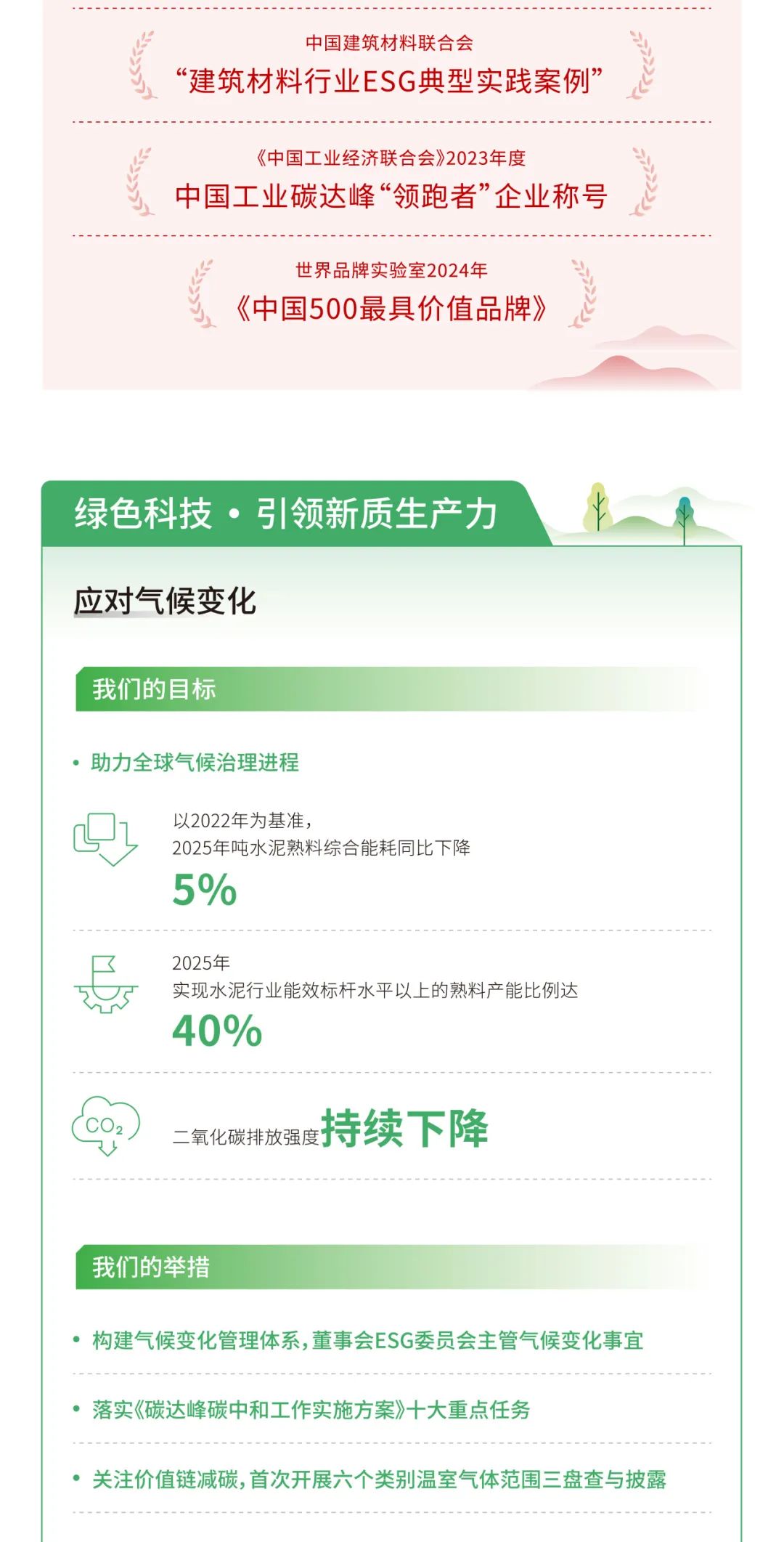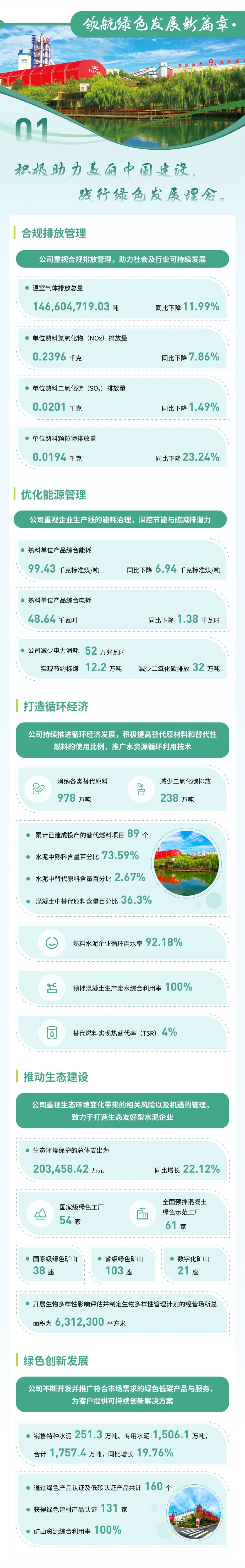 泉源:j9游国际站官网股份、天山股份 宣布时间:2025-04-07作为“中央企业ESG同盟”首批成员企业,,,,,,j9游国际站官网集团起劲践行ESG理念,,,,,,以“质料创立优美天下”为使命,,,,,,坚持“善用资源、效劳建设”的焦点理念,,,,,,承继“立异、绩效、协调、责任”的焦点价值观,,,,,,追讨情形、社会及管治的协调共赢,,,,,,将ESG理念最终落着实市场绩效、科技立异、节能环保、员工关爱、企业公民等履责实践之中,,,,,,并一直建设健全ESG事情机制与治理系统,,,,,,起劲推动成员企业披露专项报告。。。。。。现在,,,,,,已实现集团所属13家上市公司ESG专项报告披露“全笼罩”。。。。。。