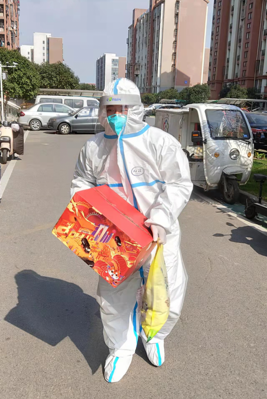 在接到通知说需要1名同志前往封控小区安和家园自愿效劳时,,,,,,作为公司党务专员,,,,,,28岁的程祺然第一个报名,,,,,,自动要求前往一线,,,,,,和其他防疫自愿者一起配合东山街道社区,,,,,,做好现场疫情包管效劳。。。。。。