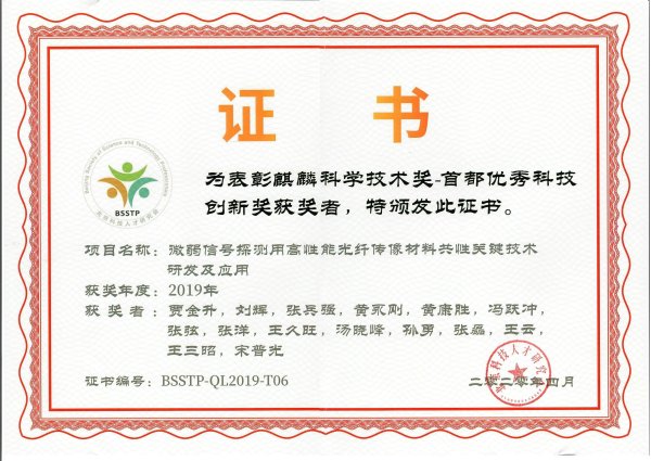 泉源: 宣布时间:2020-05-225月14日,,,,,,,,由北京市科学协会主理,,,,,,,,北京科学中心、北京科普生长中心、北京科技人才研究会承办的“滥觞众创,,,,,,,,双翼承新”首都科技立异效果展宣布暨2019年度麒麟科学手艺奖颁奖运动,,,,,,,,通过北京人民广播电台以“云宣布”和“云颁奖”的立异形式播出。。。。。。总院所属特种玻璃纤维与光电功效质料研究院贾金升教授团队效果《微弱信号探测用高性能光纤传像质料共性要害手艺研发及应用》荣获麒麟科学手艺奖“首都优异科技立异奖”。。。。。。