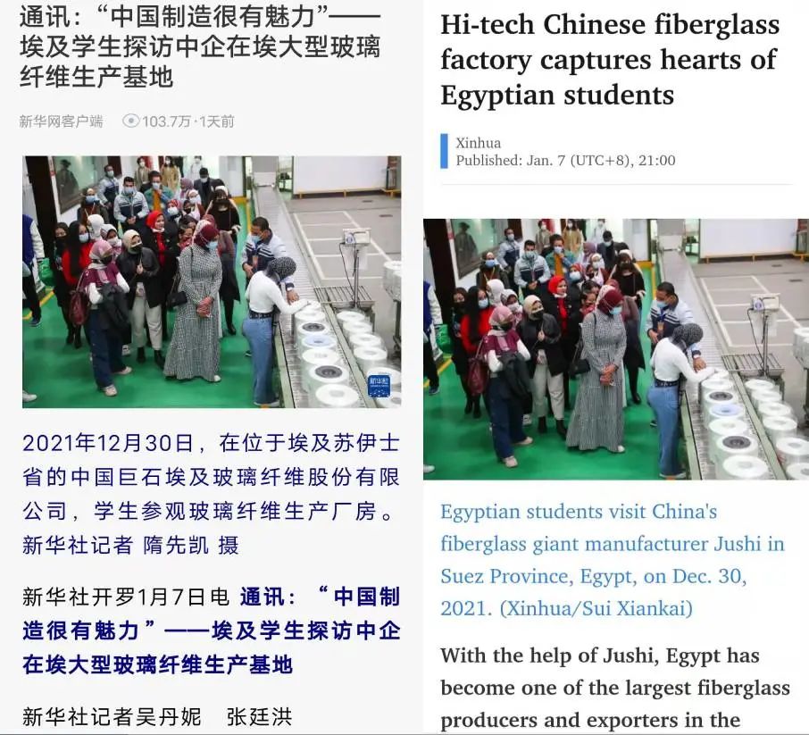 《新华网》刊发 | “中国制造很有魅力”——埃及学生探访中企在埃大型玻璃纤维生产基地