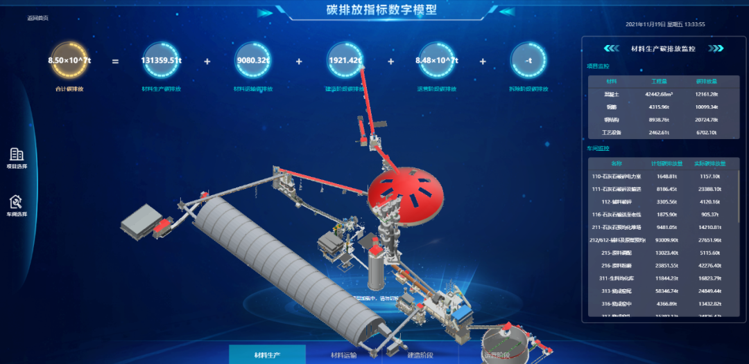 一直完善水泥工程建设全生命周期数字化解决计划,,,,,率先在行业内实现二维设计向三维数字设计的厘革。。。。。自主开发的工厂碳排放数字化核算平台,,,,,实现了对工厂全生命周期碳排放的细腻化盘算和实时动态监控,,,,,引领行业绿色设计、绿色制作