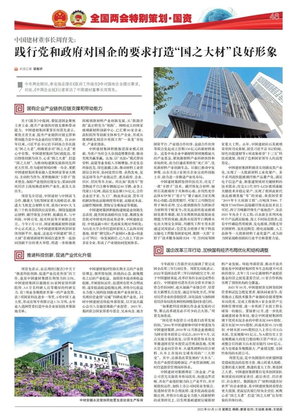 ¡¶ÖйúÆóÒµ±¨¡·Á½»áÌØÊâ²ß»® | ÖÜÓýÏÈ£º¼ùÐе³ºÍÕþ¸®¶Ô¹úÆóµÄÒªÇó ´òÔì¡°¹úÖ®´ó²Ä¡±ÓÅÒìÐÎÏó