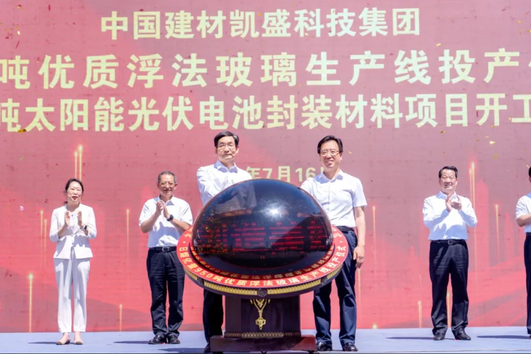 在耀华高新手艺工业园区,,,,,,,,周育先出席了j9游国际站官网凯盛科技950吨优质浮法玻璃生产线投产仪式暨1200吨太阳能光伏电池封装质料项目开工仪式。。。。。。。仪式上,,,,,,,,周育先宣布新项目投产暨开工正式启动,,,,,,,,并与王曦配合按下启动键。。。。。。。