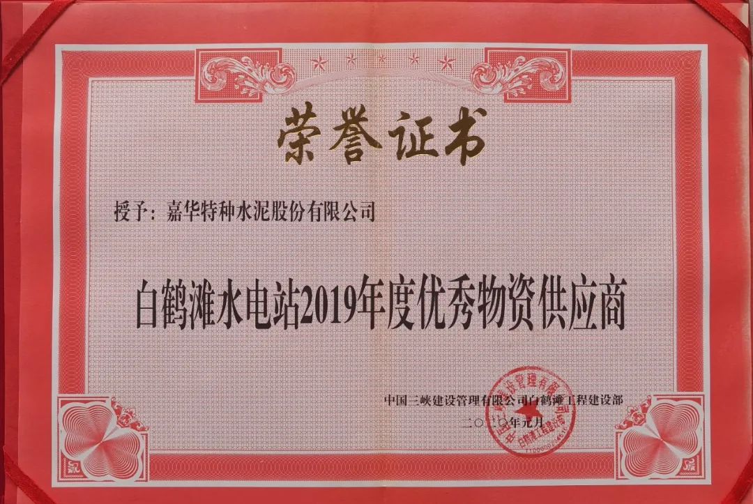 嘉华水泥战胜车辆调理、蹊径施工绕道等重大的运输条件、疫情防控等多重磨练,,,,,,,,全心组织、起劲协调,,,,,,,,保质保量完成了低热硅酸盐水泥的生产、保供使命,,,,,,,,助力白鹤滩水电站高质量完成工程建设,,,,,,,,被中国三峡建设治理有限公司白鹤滩工程建设部授予“优异物资供应商”。。。。。。