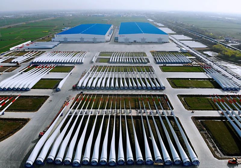 中材科技风电叶片股份有限公司在江苏阜宁的工厂,,,,,,,是亚洲最大的风电叶片供应基地。。。。。。。车间里,,,,,,,工人们在举行叶片的蒙皮铺设,,,,,,,他们生产的是93.2米长的叶片,,,,,,,而在另一个车间里,,,,,,,全球最长的海上叶片已初具雏形。。。。。。。