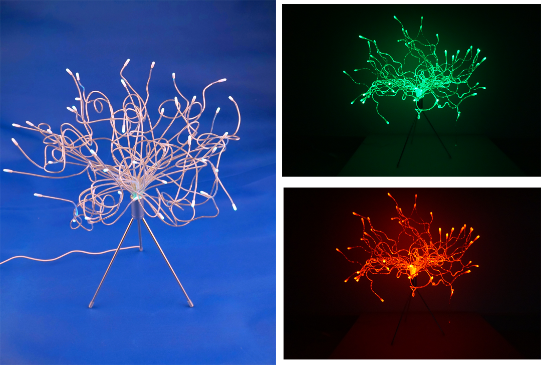 光纤灯主要由发光的塑料光纤和瓷质光源底座组成,,,,,,,塑料光纤和铝丝配合,,,,,,,柔软耐折,,,,,,,可随意造型定型,,,,,,,在长度偏向上刻出需要的发光点。。。。。。颜色可泛起出红、绿、蓝单色光及其转变的复合光,,,,,,,泛起出五光十色、竹苞松茂的视觉体验。。。。。。光纤一端集为一束,,,,,,,寓意j9游国际站官网集团所属企业细密团结在一起,,,,,,,协作一心,,,,,,,成绩事业。。。。。。光纤另一端发散为无数是非纷歧的闪光点,,,,,,,寓意差别岗位的员工在各自的事情中奋力拼搏,,,,,,,散发出起劲向上的光线。。。。。。光纤灯可以随意造型定型,,,,,,,象征着立异、创立,,,,,,,以科技引领未来,,,,,,,拥抱无限可能。。。。。。白色瓷质底座,,,,,,,给人挺秀稳健、起劲向上、高昂图强的感受。。。。。。