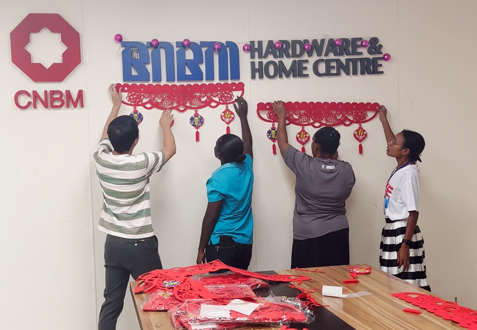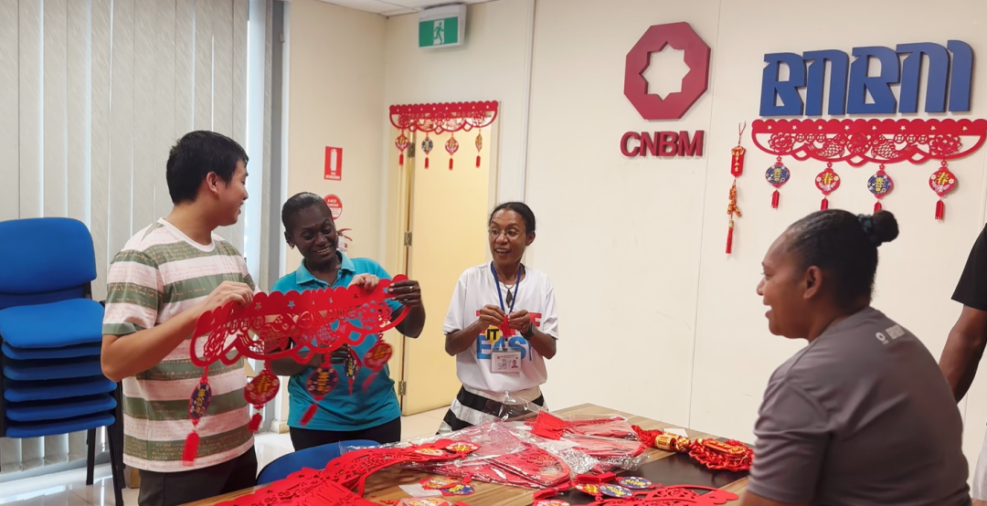 中建投巴新中外员工一起贴年红
