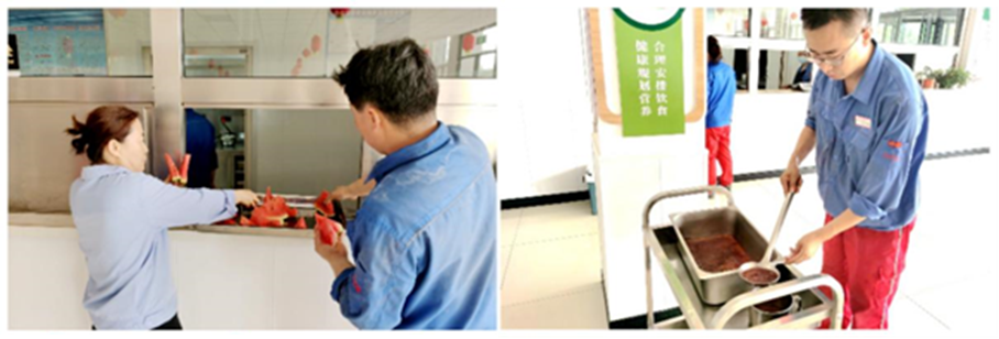 为做好防暑降温,,,,,,包管一线员工的身体康健,,,,,,中宁赛马、吴忠赛马一连开展在逐日准备午餐和晚餐时,,,,,,相继为宽大职工提供西瓜、绿豆汤等食物和防暑饮品,,,,,,送去夏日的清凉与眷注。。。。。。。。