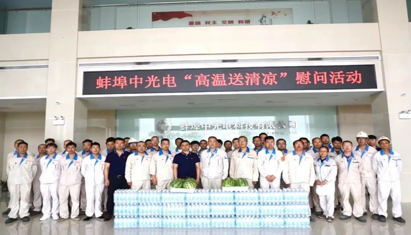 为进一步做好夏日清静生产和防暑降温事情,,,,,,在包管完成生产使命的同时包管宽大员工劳动清静康健,,,,,,蚌埠中光电开展“工会送清凉”运动,,,,,,为酷暑中坚守岗位的干部员工送去清凉和关爱。。。。。。。。