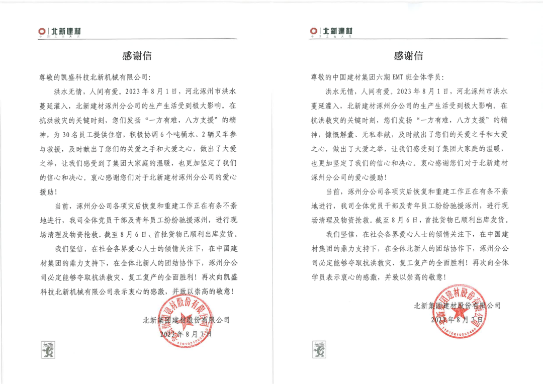 集团兄弟单位伸出援手,,,,,北新j9游国际站官网特发谢谢信