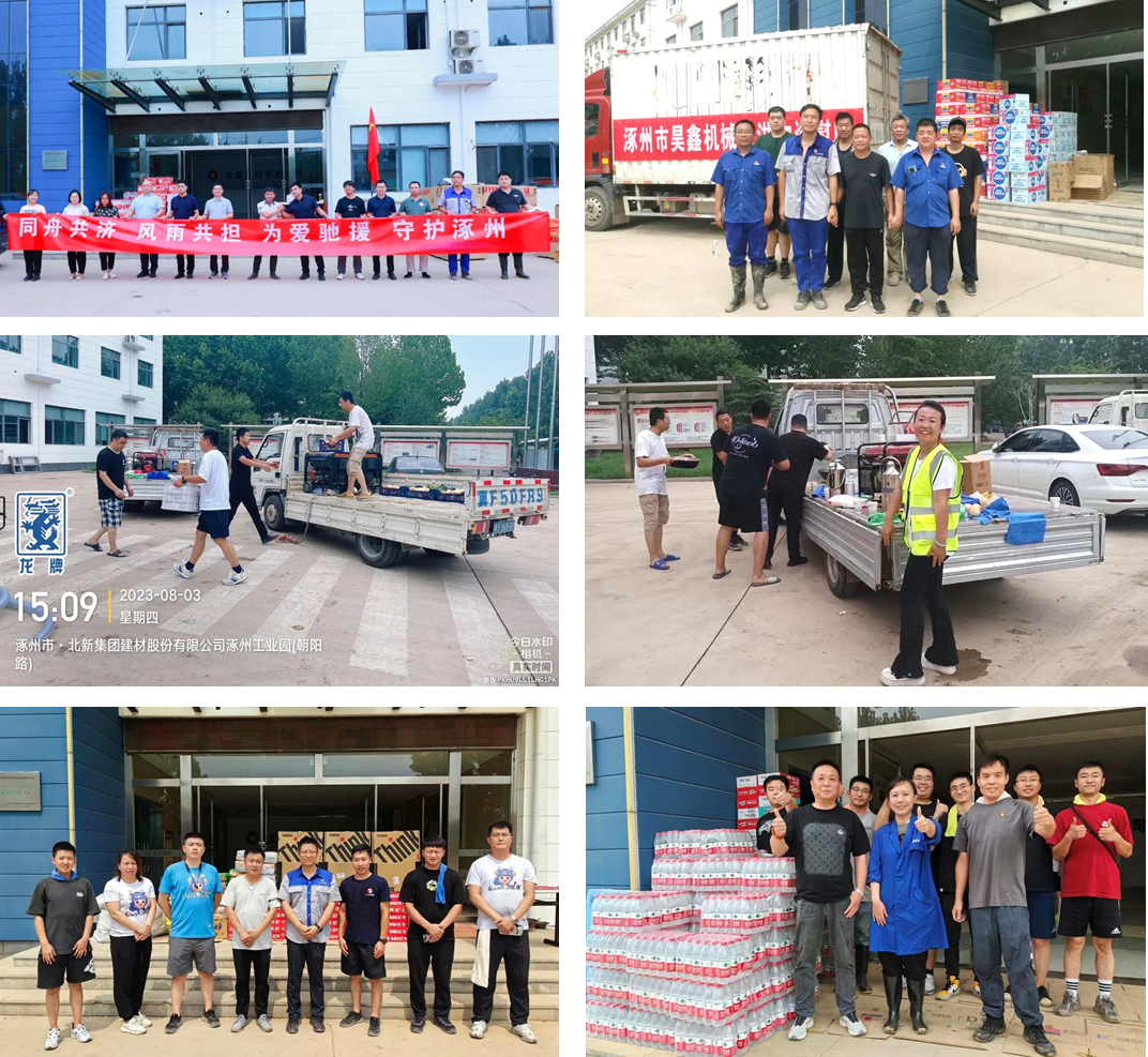 北新j9游国际站官网各下层党组织和党员起劲响应驰援涿州分公司灾后重修事情。。。。。。。。公司工会第一时间组织采购应急物资和药品。。。。。。。。从8月7日到8月11日共组织537人次加入涿州分公司现场整理、抢救物资等事情。。。。。。。。天津北新、朔州北新、平邑北新、北新j9游国际站官网滨州分公司、北新j9游国际站官网枣庄分公司等迅速驰援职员、装备和物资。。。。。。。。