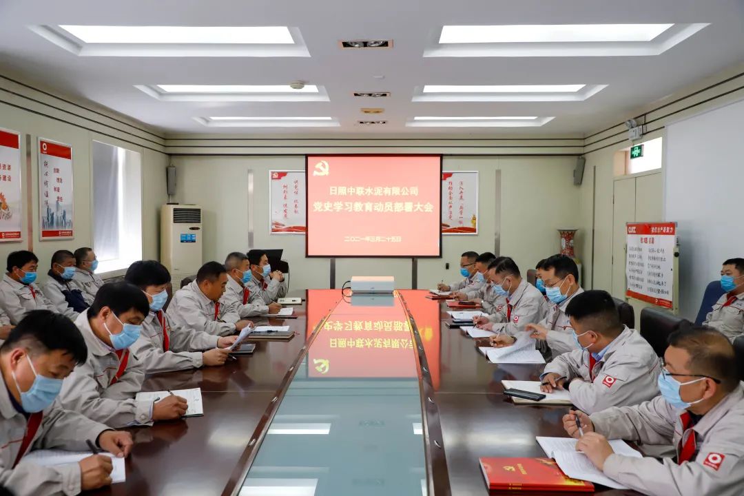 2021年是中国共产党建设100周年,,,,,,,党中央决议在全党开展党史学习教育,,,,,,,为扎实开展好党史学习教育相关事情,,,,,,,日照中联党总支于3月25日下昼召开党史学习教育发动安排大会,,,,,,,深入学习贯彻习近平总书记在党史学习教育发动大会上的主要讲话精神,,,,,,,并对公司党史学习教育举行发动安排。。。。。。