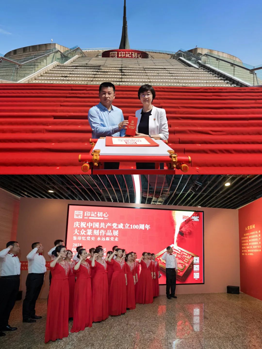健跑前夕,,,,,,孙力实向中华世纪坛赠予了新质料印章,,,,,,宽大党员旅行中华世纪坛举行的“印记初心——庆祝中国共产党建设100周年公共篆刻作品展”,,,,,,并开展重温入党誓词运动。。。。。